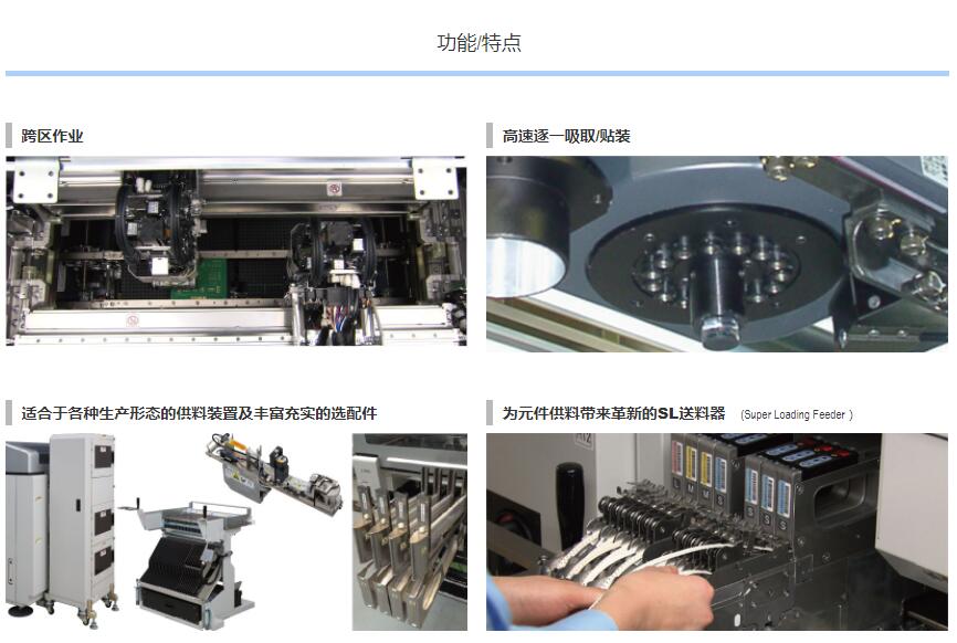 2.轉(zhuǎn)塔式貼裝頭實現(xiàn):1個貼裝頭支持貼裝多種元件,速度、通用性和生產(chǎn)率進一步提升。