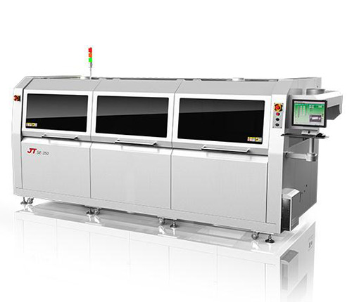外形流線型設(shè)計,內(nèi)部模塊化設(shè)計,適合SMT及直插元件的無鉛焊接。 噴霧系統(tǒng)采用離心風機上抽風,防止助焊劑滴到PCB上。 助焊劑緩沖罐感應器外置,更加可靠耐用。 標配冷風刀,防止助焊劑霧氣向外擴散,減少污染。 雙波控制采用無極變頻技術(shù),可獨立控制波峰高度。 1/4HP大功率波峰馬達,更大波峰高度可達15mm。 具有超溫聲光…