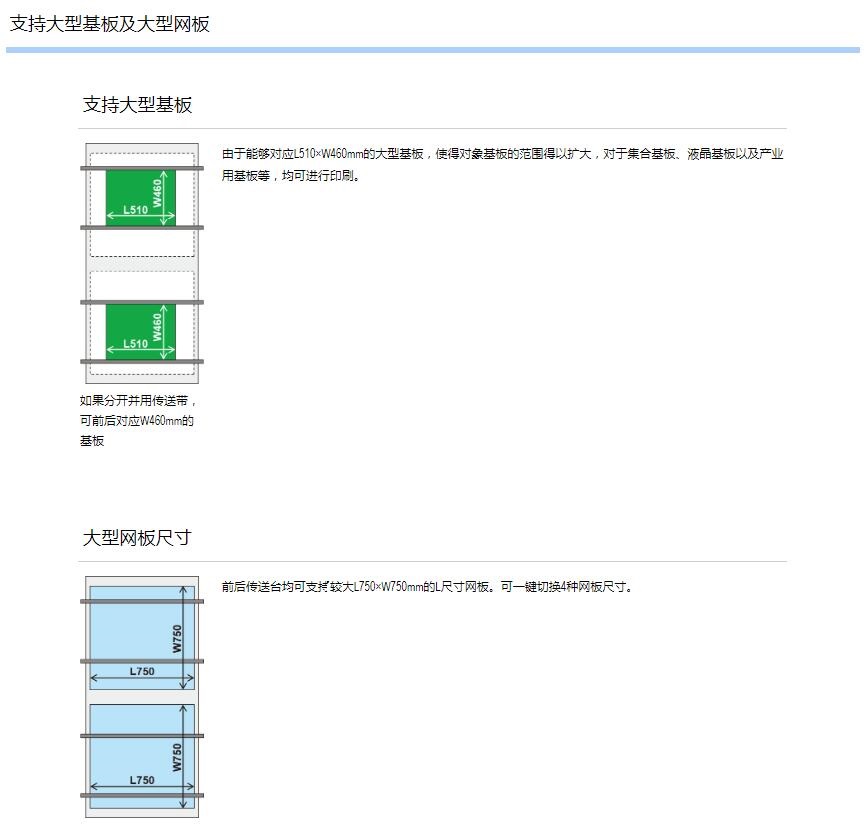 YSP20印刷機1.采用Dual stage、Dual mask。2.實現了超常“高速”、“多功能性”。3.超高速印刷性能5sec/cycle。4.重復對位精度3σ:±0.005mm。5.支持大型基板L510 x W460mm。6.前后網板尺寸更大可達750×750mm。